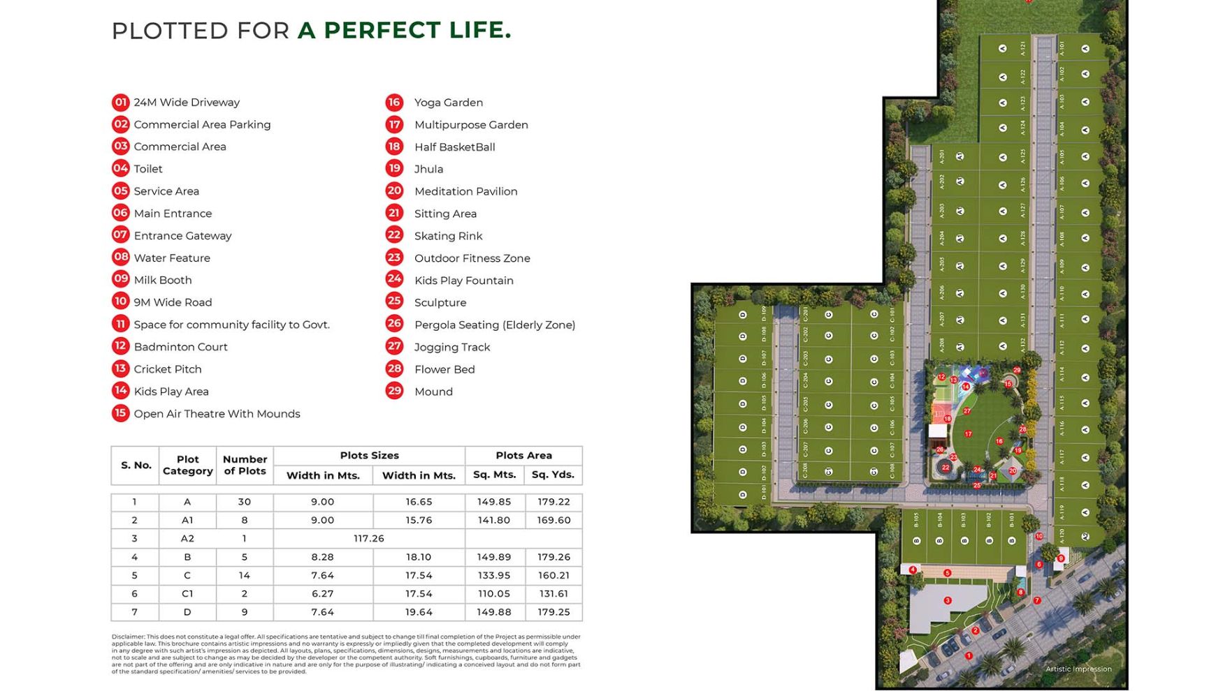 Adani Tatva Estates offers residential plots in sizes ranging from 131 sq. yds. to 179 sq. yds.