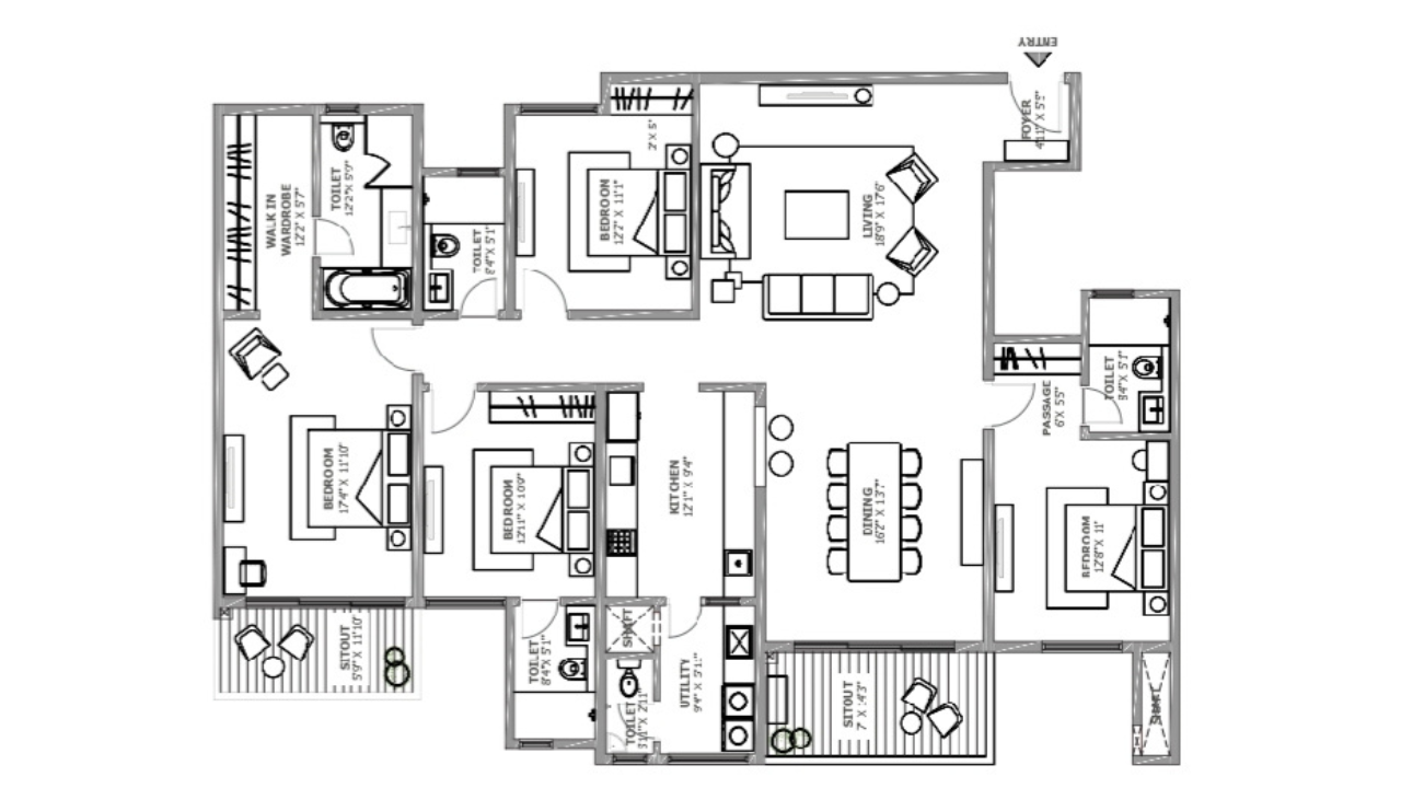 | 4 BHK | 1886 - 1967 Sq. Ft. | 3.96 - 4.23 Cr* |