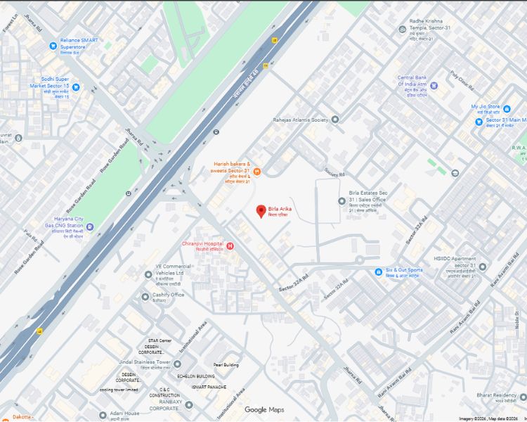 Birla Arika Sector 31, Gurgaon enjoys proximity to business zones around NH-48, Cyber City, Udyog Vihar, and Golf Course Road. The location is also close to leading hospitals like Medanta and Fortis, along with reputed schools and major commercial centres.