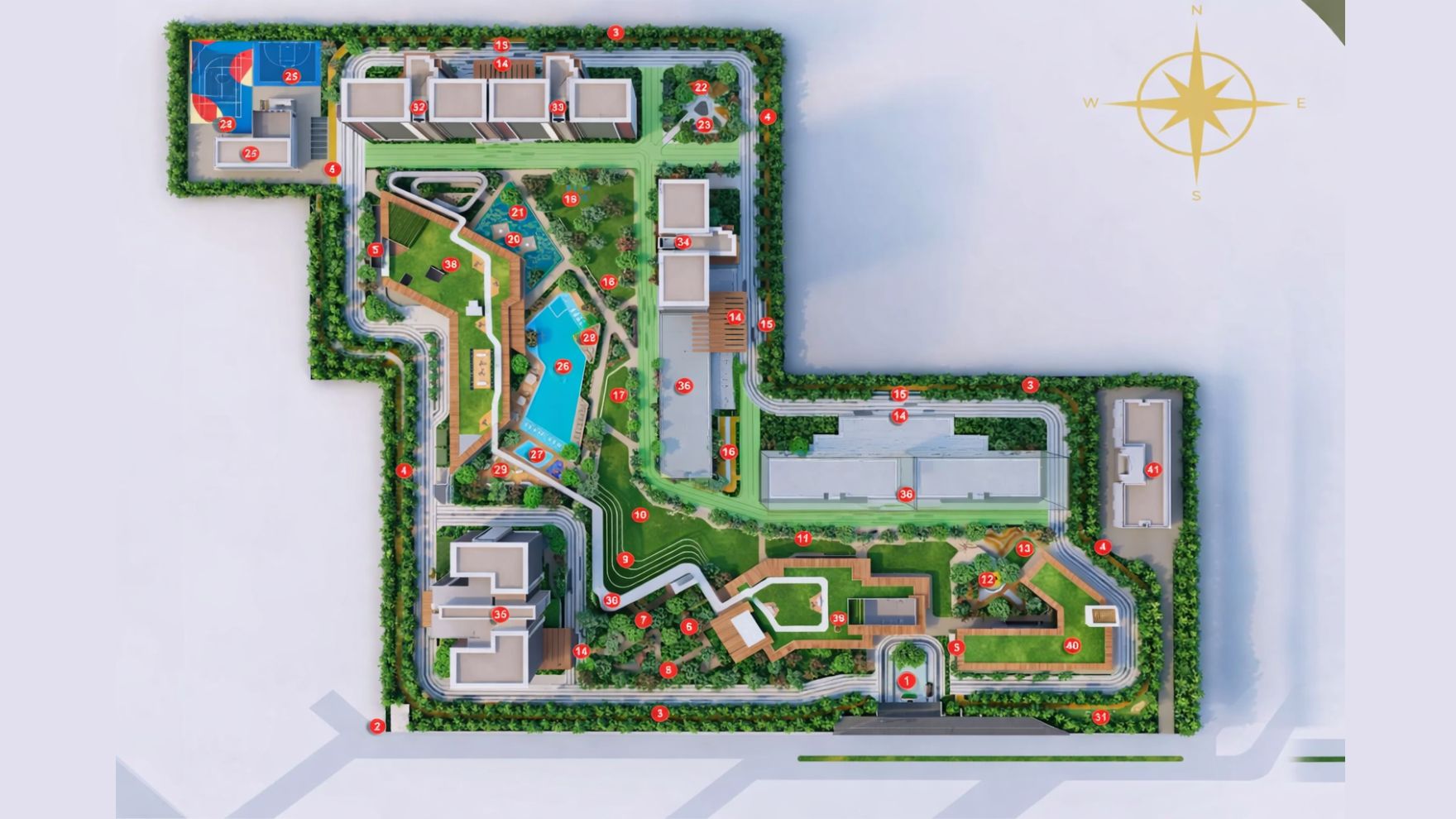 Birla Navya Avik offers premium amenities, including four clubhouses, meditation decks, reflexology path, nature walk, celebration lawn, half Olympic and kids’ pools, outdoor gym, tennis and half basketball courts, jogging and cycling tracks, pet park, yoga lawn, amphitheatre, and beautifully landscaped greens.