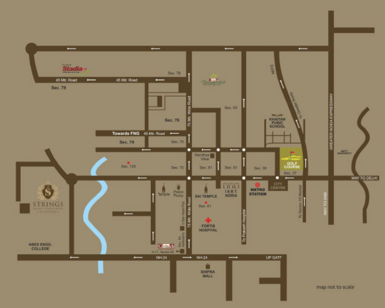 Civitech Strings is close to The Millennium School, DPS, and hospitals like Yatharth Hospital and Motherland Hospital.