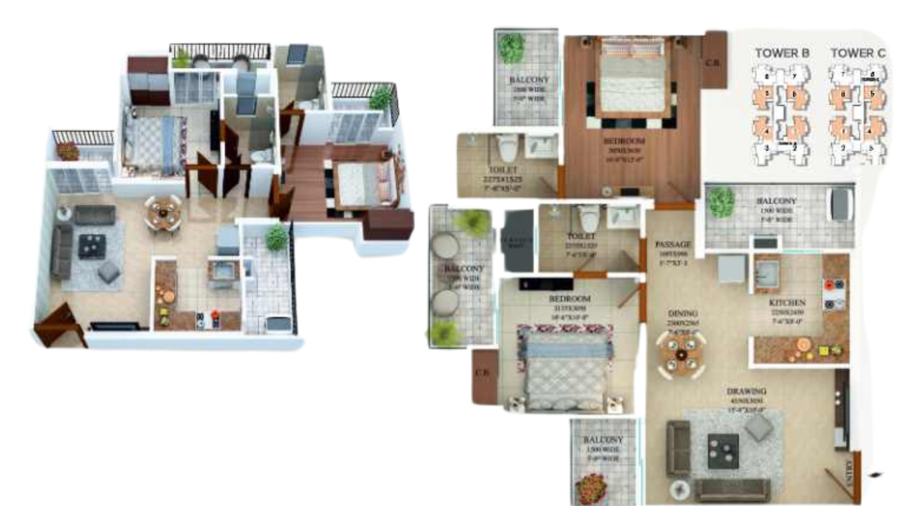 | 3 BHK | 642-643 Sq. Ft | 1.38-1.4 Cr * |