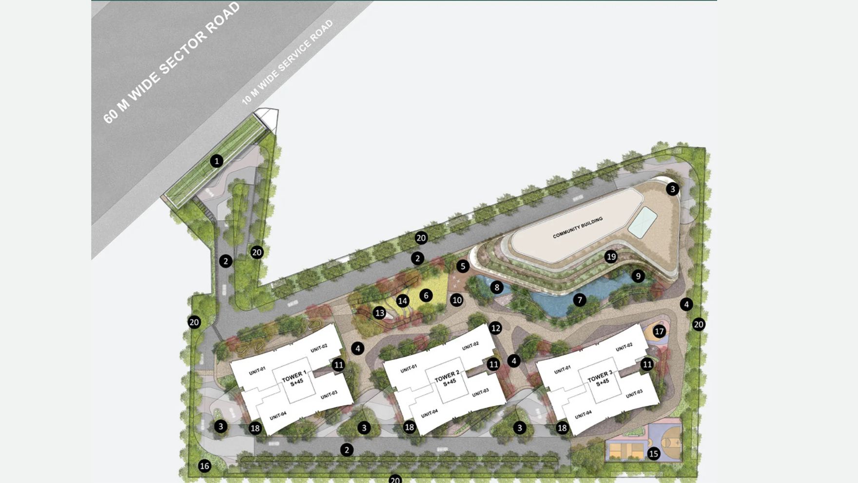 Experion The Trillion Sector 48 Gurgaon Amenities Such as a large clubhouse, fitness center, spa, mini-theater, VR gaming, golf simulator, kids' play zones, swimming pools (kids' & adult), sports courts (basketball, badminton), jogging tracks, Zen gardens, fine dining, and smart home features.