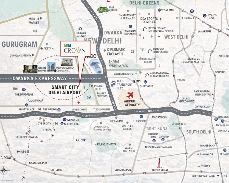 M3M Crown Gurgaon Sector 111 is strategically located with easy access to key business hubs, schools, hospitals, entertainment centers, metro, local transport facilities, and the Indira Gandhi International Airport, making it a well-connected and convenient residential choice.