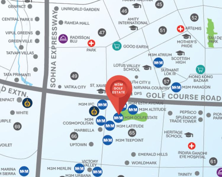 M3M Golf Estate Gurgaon location is in Sector 65, Gurgaon, on Golf Course Extension Road.