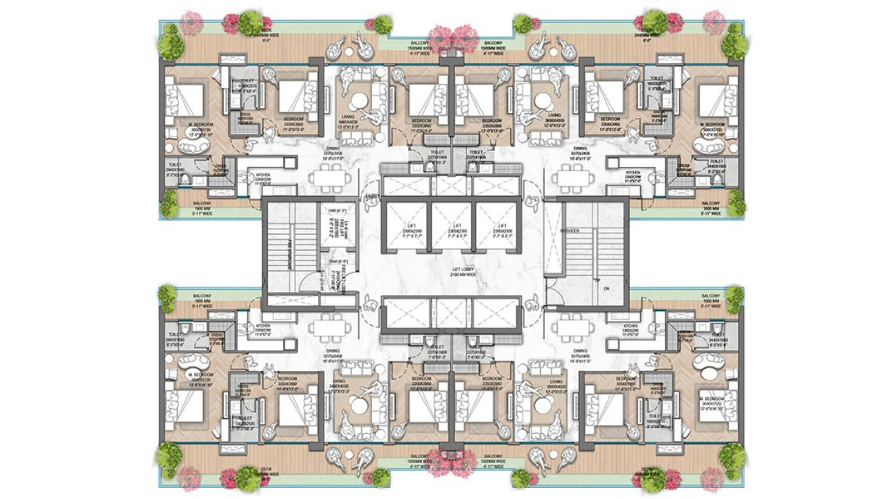 | 4 BHK | 2048 - 2147 Sq. Ft. | 10.84 - 11.37 Cr* |