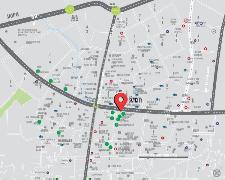 M3M sky city location is Sector 65, Near Golf Course Road Extension, Gurgaon.