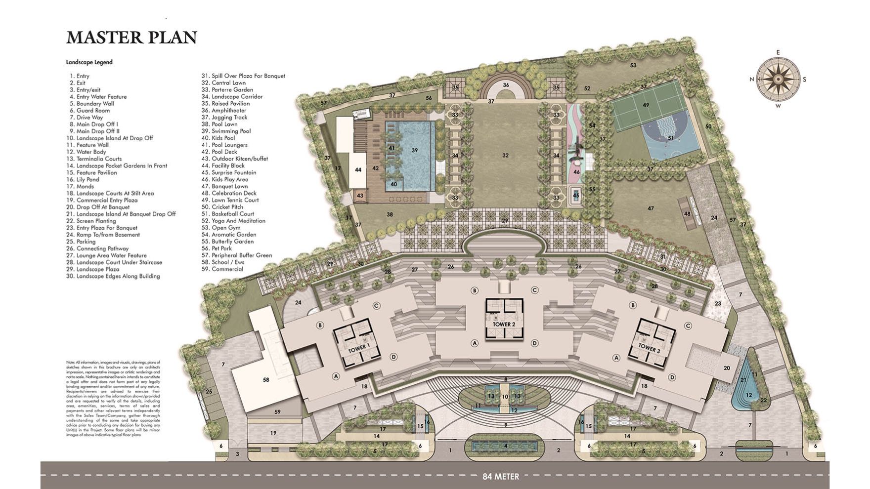 Alban 71 offers world-class amenities including: 60,000 sq. ft. 3-level clubhouse, Swimming pool, Gym, squash court, badminton court, Jogging tracks, spa, yoga & meditation zones, Mini-theater, indoor games, lounges, 80% open landscaped greens.