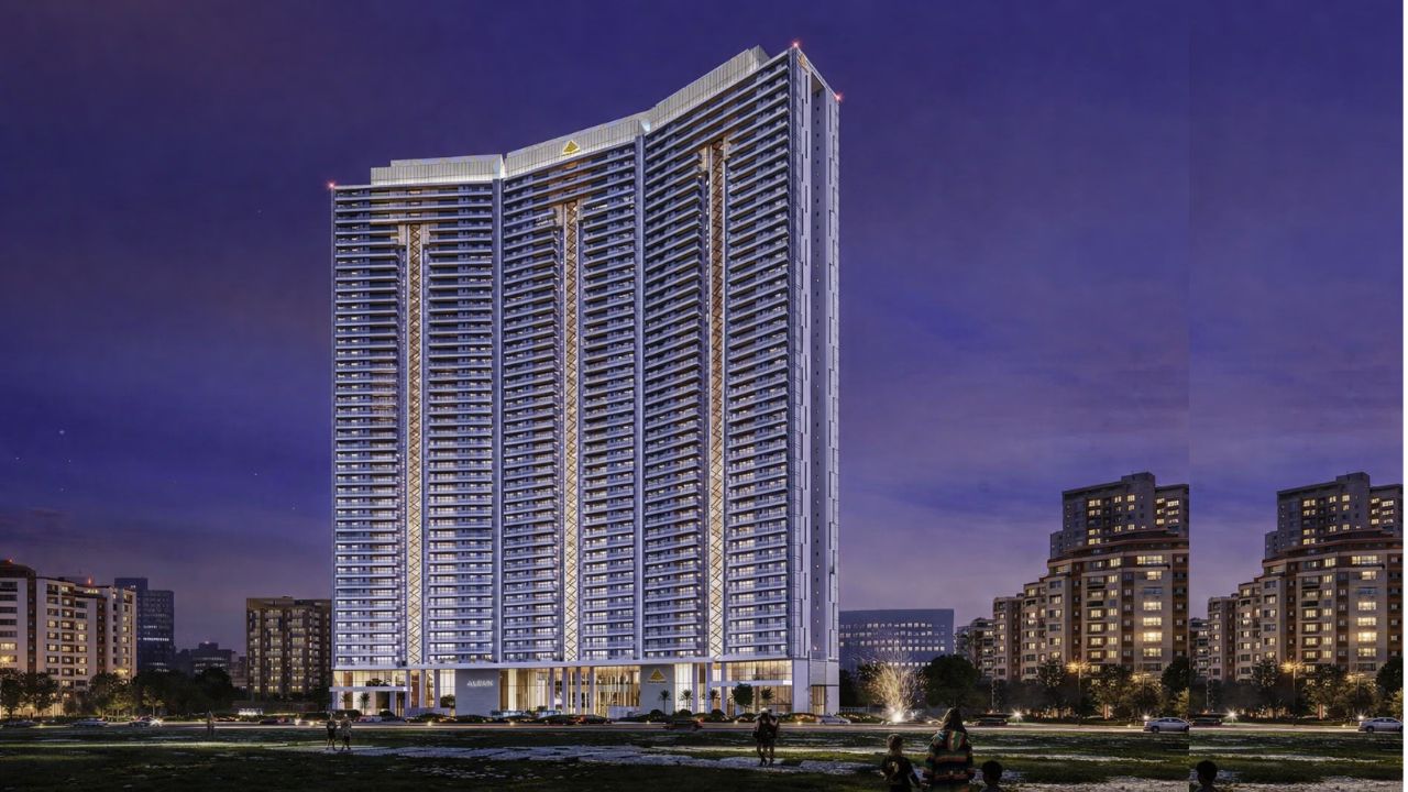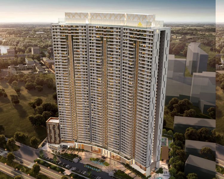 The project features 3 BHK and 3.5 BHK luxury apartments, designed with modern architecture, triple-height lobbies, and expansive 50-foot running balconies.
