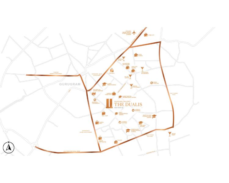 Shapoorji Pallonji The Dualis location is Sector 46, Near Delhi Ajmer Expressway, Gurgaon.