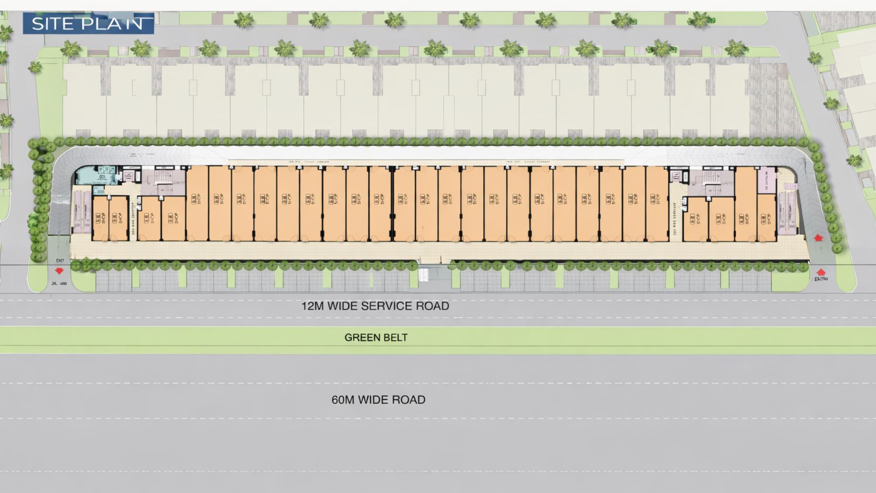 Orchard Street Smart World offers premium amenities, including landscaped greens, clubhouse spaces, modern security systems, parking facilities, and lifestyle-focused common areas.