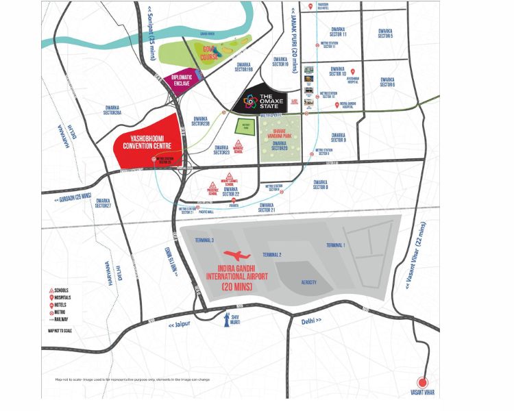 Omaxe State Location in Sector 19B, Dwarka, Delhi.