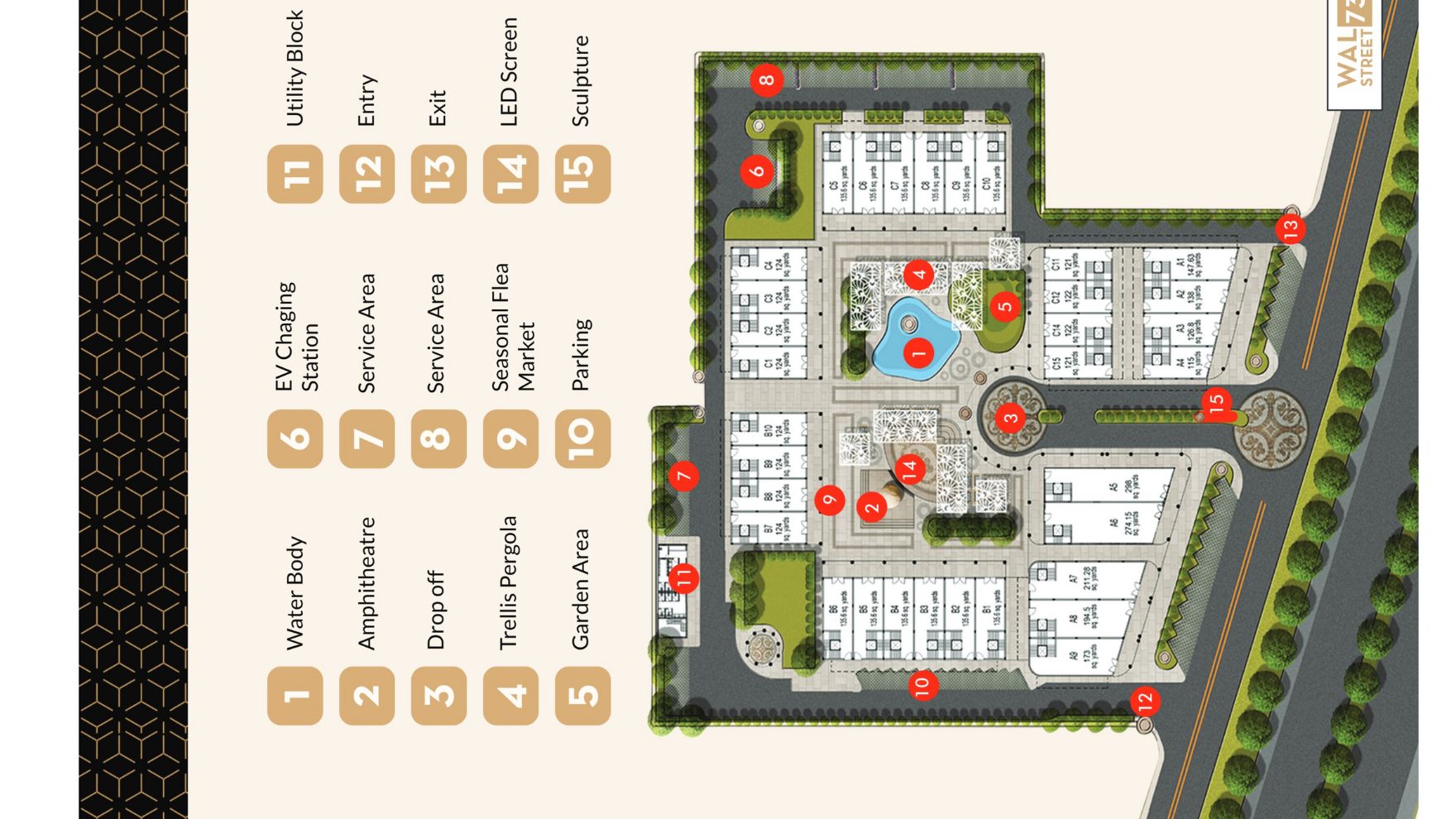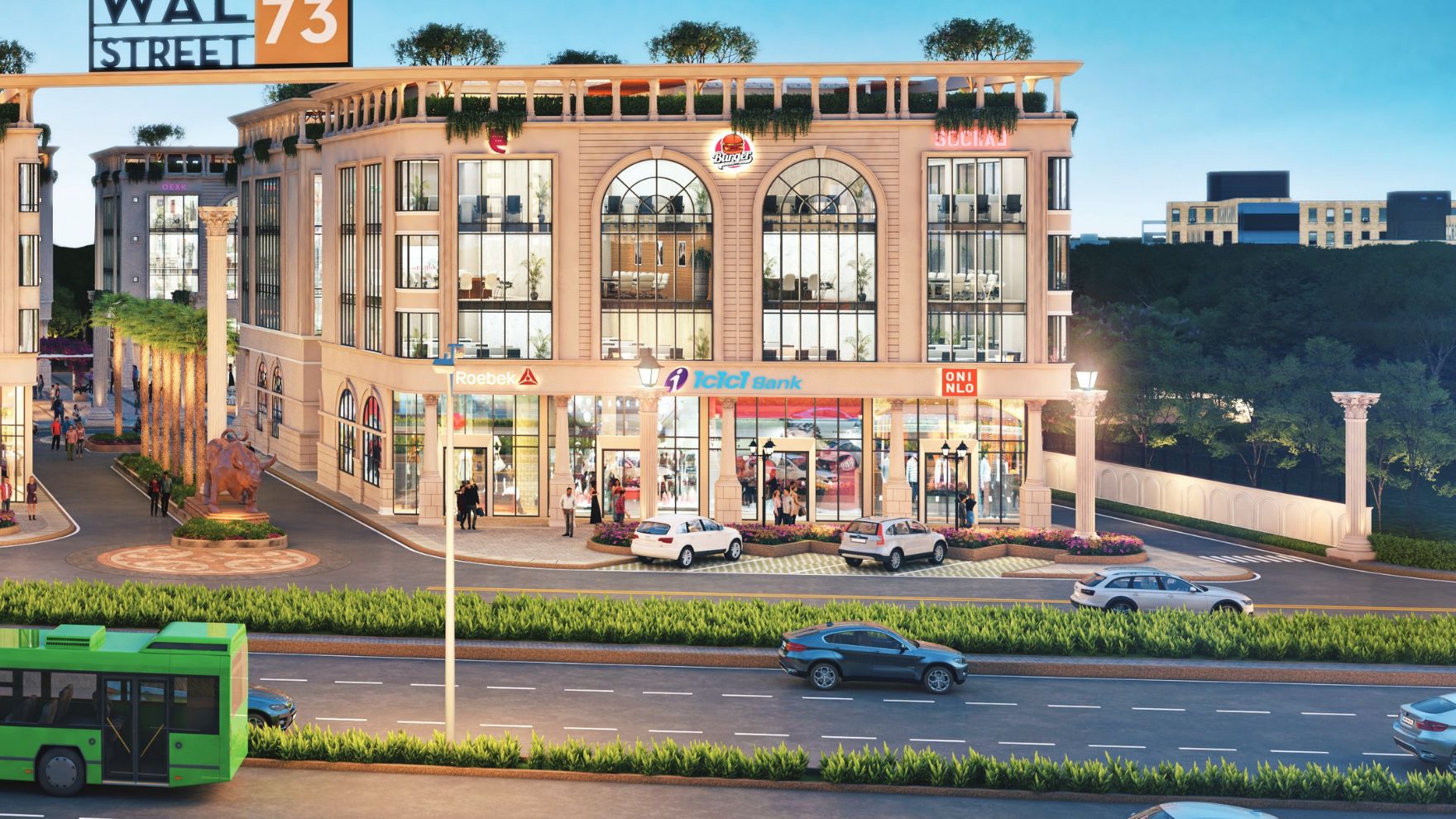 Wal Street Sector 73 Gurgaon Amenities Such EV charging, 24/7 security & power backup, large green spaces, food courts, restaurants, a gym, ample parking, CCTVs, lifts, and a central courtyard with air purifiers & amphitheater.