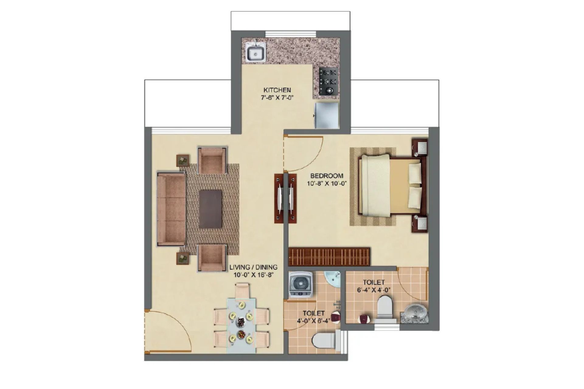 Floor Size ( 391 - 846 Sqft. ) - The size of the residences, which range from 391 to 846 square feet, allows inhabitants to live large and comfortably.